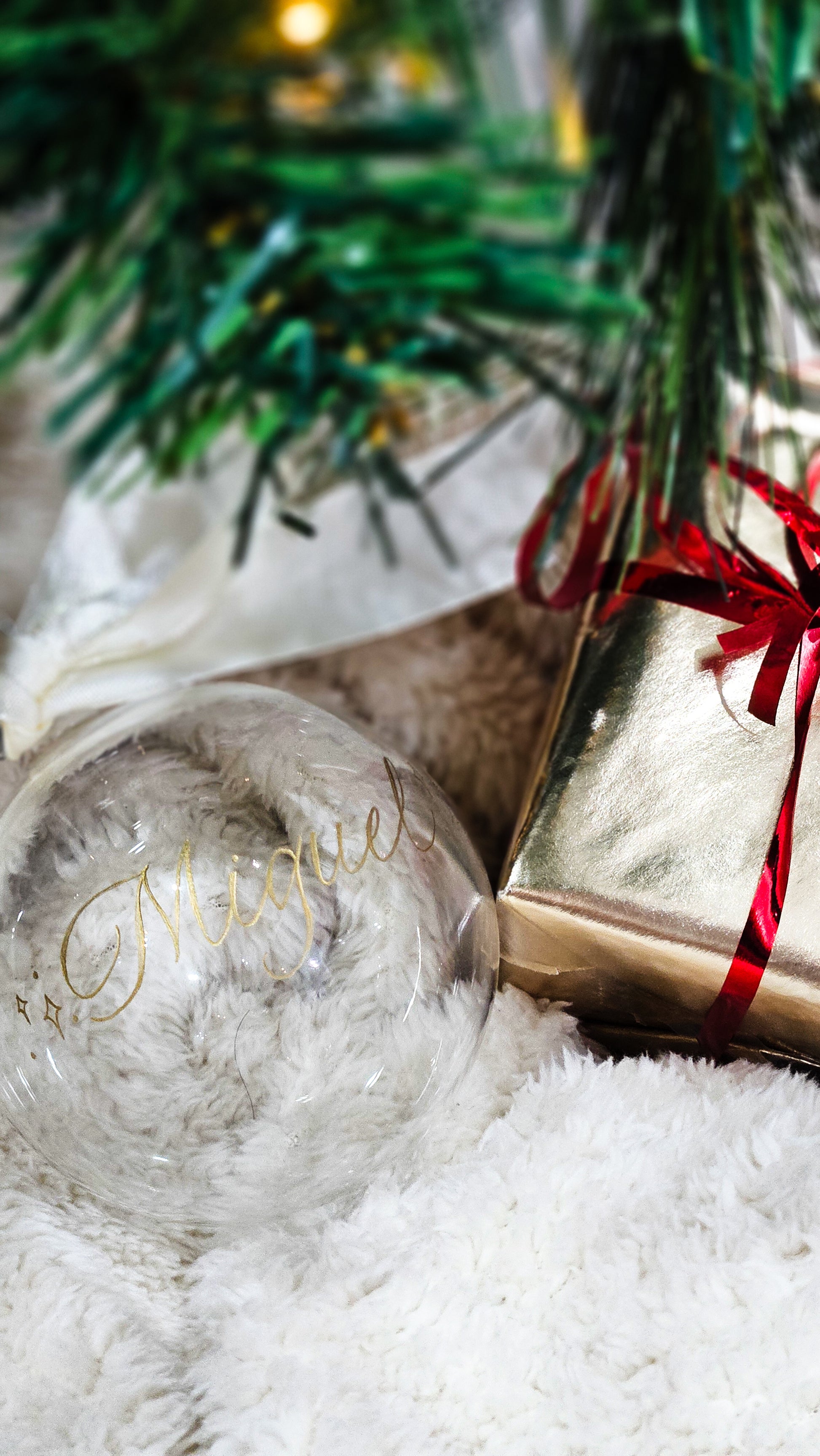 - Each bauble is individually hand-engraved in The Chelle Studio’s calligraphy script for a bespoke finish (see product photos)